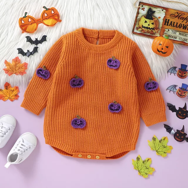 Halloween Pumpkin Baby Romper Knit Bodysuit 0-18M