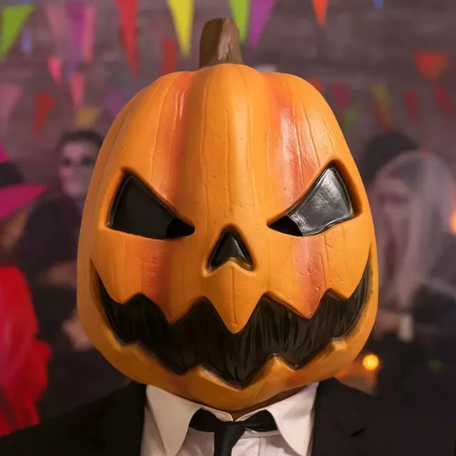 Scary Pumpkin Latex Halloween Mask – Breathable Jack-o’-Lantern Head Cover